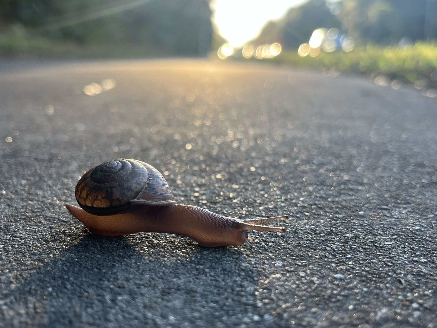 Attached is a photo of a snail I took on my walk home from work the other day. Thank you for reading! Maybe we can be friends.